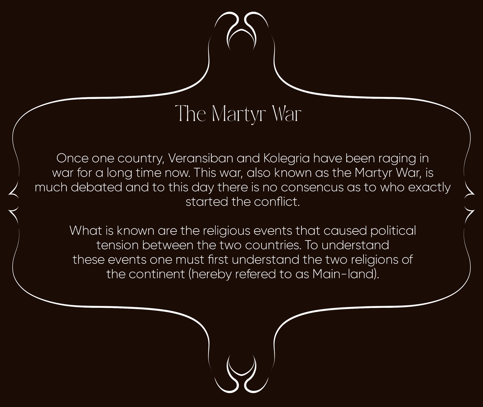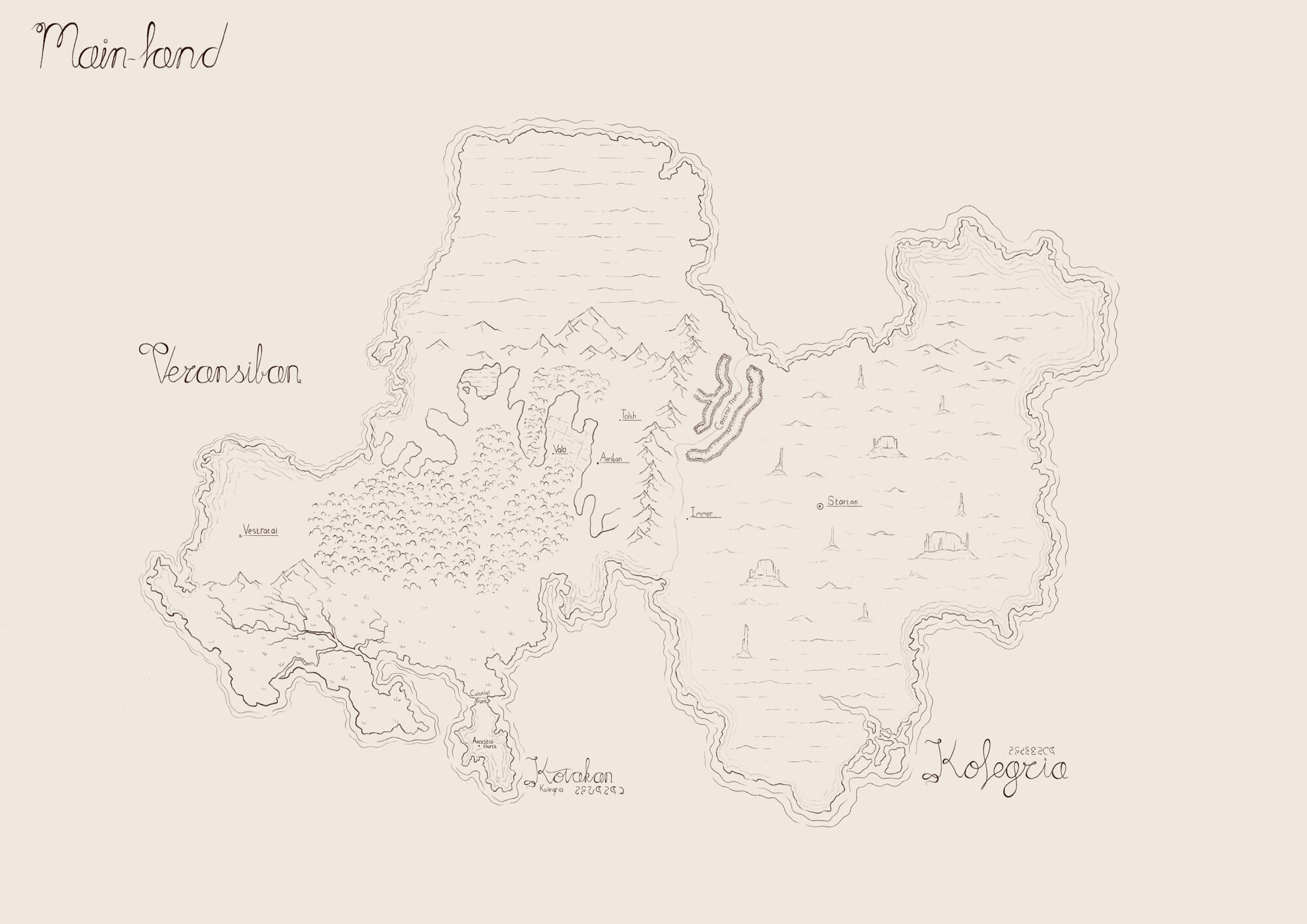 A map of the main-land and further lore of the world.